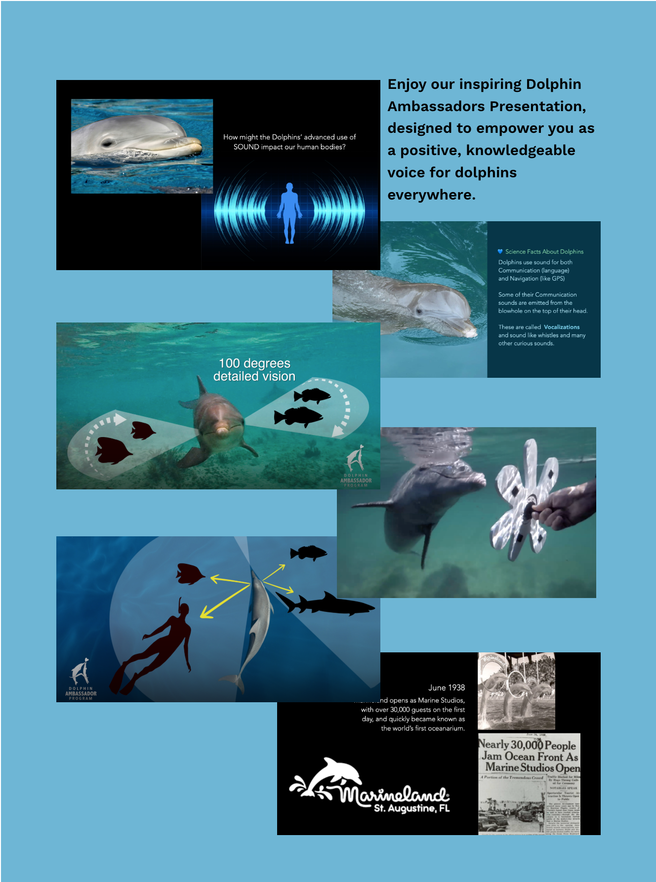 Our goal is to empower you as a positive, knowledgeable voice for dolphins everywhere. It's another way to give back to the dolphins!